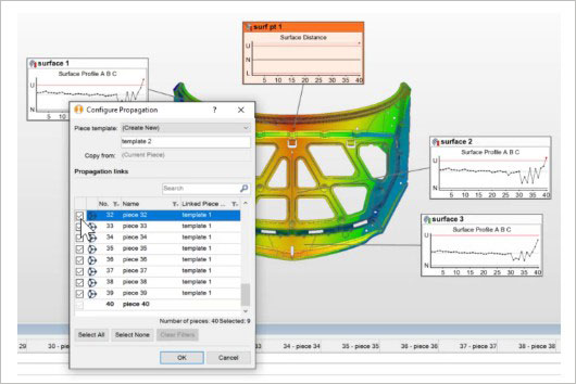 3、现在,用户可以借助PolyWorks 2020版,通过一次操作将这些新对象和报告添加到选定工件的子集,以分析这些工件的对象测量结果、趋势图和统计数据,从而更好地了解导致故障的状况。