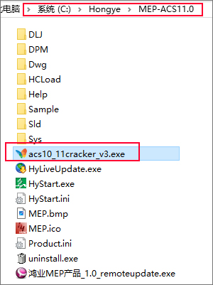 默认目录【C:\Hongye\MEP-ACS11.0】