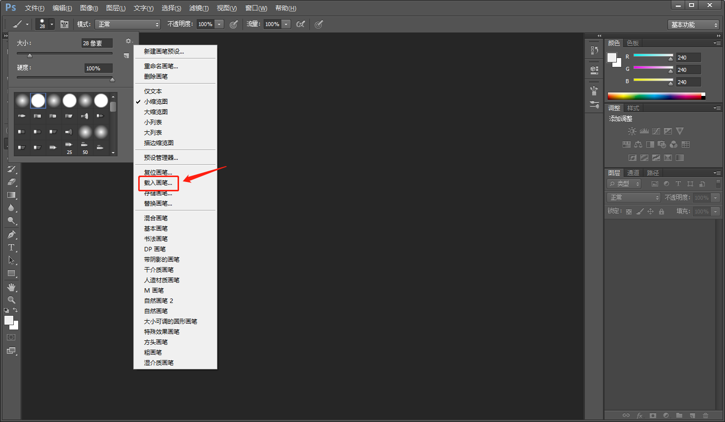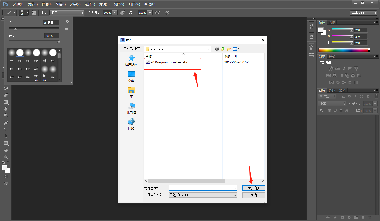 5、点击载入即可,在PS上使用孕妇剪影笔刷工具。