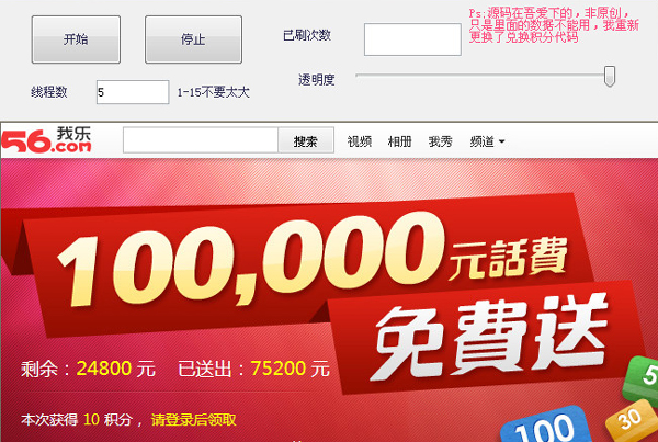 刷56抽奖积分工具是一款针对56看精彩视频提供的作弊器,平时大家通过官方渠道抽奖需要消耗积分才行,超低的中奖概率甚是让人厌烦,现在你可以通过刷56抽奖工具进行免费抽奖,无次数限制,从此再也不用担心积分的问题,想怎么抽就怎么抽,如果你的运气也不是很好,那么赶紧下载体验吧!