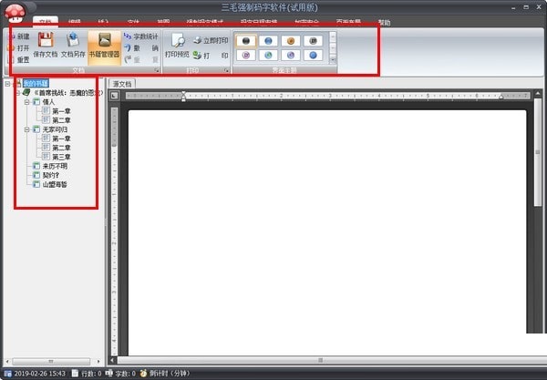 1、点击快捷方式进入软件的主界面,可使用新建模板、书籍管理器、打印预览和更换主题等工具进行操作