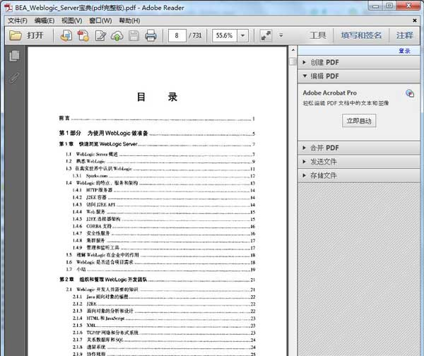 WebLogic是美国Oracle公司开发的一个基于JAVAEE架构的中间件,它主要是用于开发、集成、部署和管理大型分布式Web应用,最近国内也有许多的开发者在学习这项技术,如果您也要学的话小编建议您先下载这款weblogic server宝典来看看,该版本是pdf完整版的,书中详细的讲解了有关于WebLogic Server的开发知识,并且还提供了大量的真实环境实例,赶紧下载看看吧。
