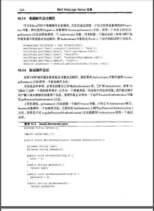 这本书内容丰富,分为8个部分,涵盖了从熟悉开发环境到使用J2EE API、创建和管理Java servlet、JSP、EJB组件等各个方面。文章还列出了WebLogic的六大优点,包括对行业标准的支持、高扩展性、快速开发能力、灵活性、可靠性和强大的架构设计。