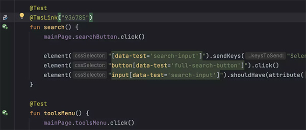 我们添加了注解来支持 Allure Framework 等测试报告工具或 Serenity BDD 等内置测试框架机制。 IDE 允许您点击问题 ID 在 Web 浏览器中打开问题或测试管理系统用例。