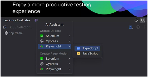 借助 AI Assistant,您可以直接从 Web 检查器中打开的网页创建 UI 测试并生成页面模型。 AI Assistant 会为所选框架和编程语言生成合适的代码,包括关键网页元素。 然后,您可以复制代码并将其插入现有文件或添加到新文件中。