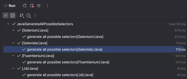 当您打开项目时,Aqua 会自动检测 Selenium/Cypress/Playwright 测试。可以通过单击装订线中的“运行”图标图标来运行已识别的测试。