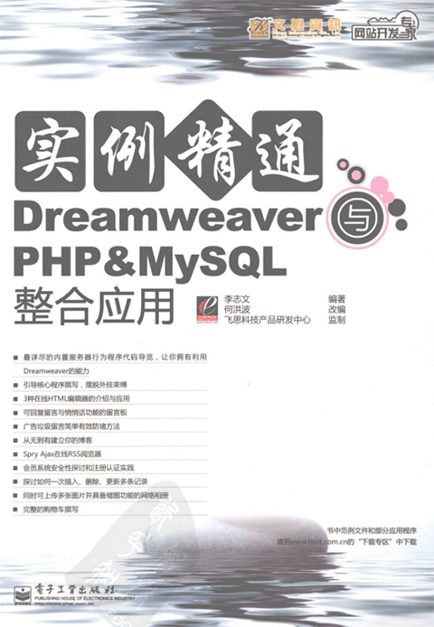 实例精通Dreamweaver与PHP&MySQL整合应用是一本Dreamweaver与PHPMySQL高级指导实战图书,由李志文编著。本书内容丰富翔实,能够指导读者真正学会利用Dreamweaver,而不是使用Dreamweaver,更不会将读者的所学、所会限制在书中范例的框架中。全书内容包括最详尽的内置服务器行为程序代码导览,具有留言回复与悄悄话功能的留言板,广告垃圾留言简单有效的防堵方法,从无到有建立你的博客,会员注册和认证,会员系统安全性探讨,完整的购物车代码等等,可以帮助学员更好的入门和上手,欢迎免费下载。