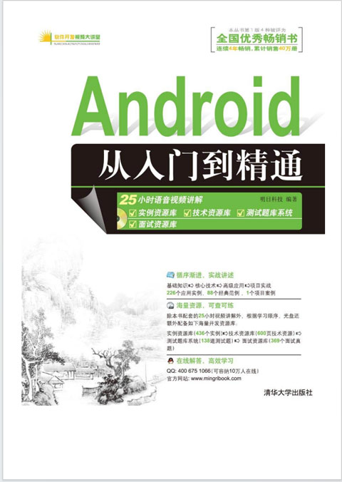 本款android从入门到精通pdf是由明日科技编著,是一本android入门书籍。全书由浅入深,循序渐进,以初、中级程序员为对象,从了解Android和搭建开发环境学起,再学习Android开发的基础技术,然后学习Android开发的高级内容,最后学习如何开发一个完整项目。讲解过程中步骤详尽、版式新颖,并在操作的内容图片上进行了标注,让读者在阅读时一目了然,从而快速掌握书中内容,能够适合作为软件开发入门者的自学用书,也适合作为高等院校相关专业的教学参考书。