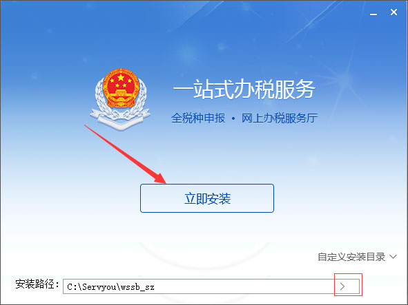 2、双击深圳市电子税务局(申报客户端)7.3.125完整安装包.exe运行安装,点击选框内的符号即可更改安装路径,点击安装: