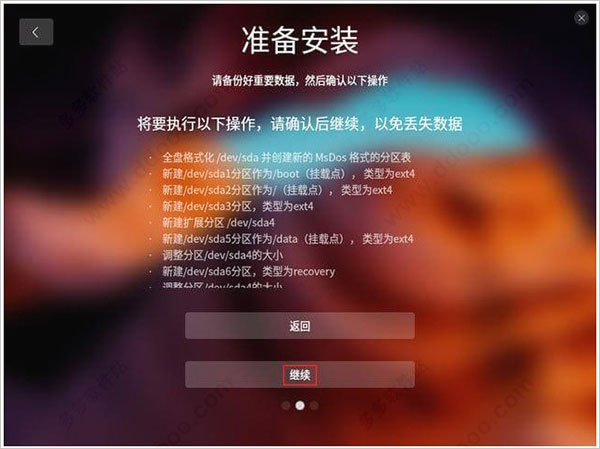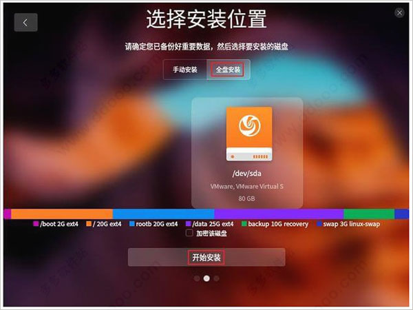 3、单击“继续安装”,选择”全盘安装“,单击“开始安装”;