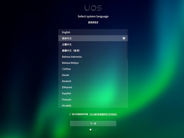 2、选择需要安装的语言,查看用户协议后勾选同意用户协议。