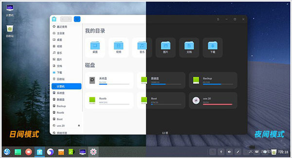和Win10、macOS一样,UOS也搭配了暗黑主题,而且比Win10更酷的是,它的暗黑模式可以跟随时间自动切换!