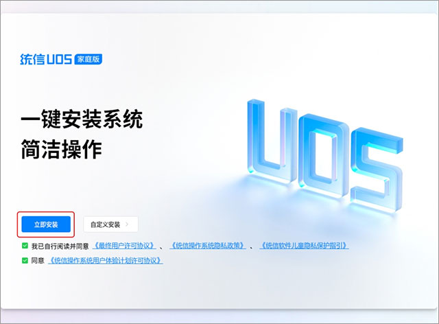 立即安装:自动安装,安装后可运行统信UOS和Windows双系统。