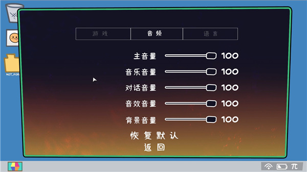 5、音频设置可以调整游戏的音量和bgm大小;