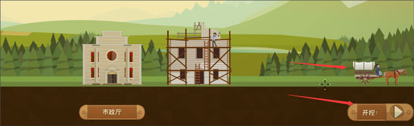 4、跟开始跟随教程走,点击马车,再店家开挖,就能来到采油旷了: