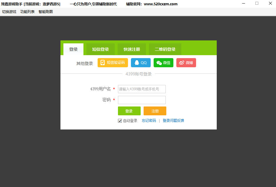 造梦西游5残霞修改器是由残霞工作室针对4399页游《造梦西游5》而打造的一款辅助软件,主要为玩家提供了修改爆率、修改攻击、修改回血、无限无双等多项修改功能,让玩家能更好的体验游戏的乐趣。不仅如此,该软件能为多款游戏提供辅助,包括造梦系列全部游戏和完美飘逸、三国小镇2等数十款游戏,给你全面的辅助修改体验,有需要的玩家快来下载体验吧。