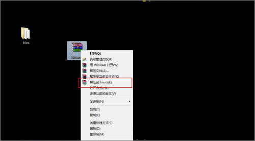 1、首先是下载bios文件右键解压到bios,然后呢进入bios文件夹里面。