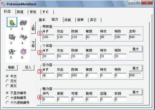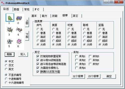 包括基本的种族、性格、手持道具、等级、经验、能力、技能、缎带、宠物球等。