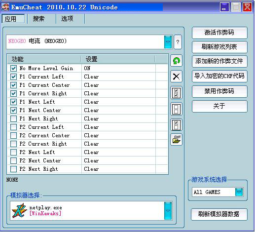 2、在选择好支持的模拟器后会自动弹出游戏作弊码列表。