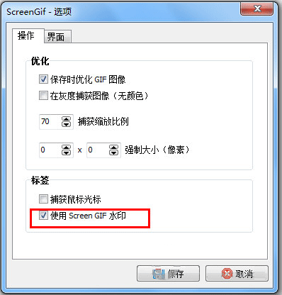 第一次使用,请在 选项-操作-关闭水印,否则录制的GIF会有死鱼眼的水印