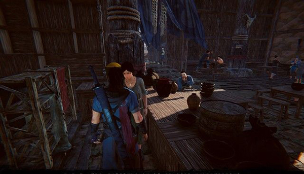 准备完毕之后,坐在客栈一楼的椅子上,然后按空格站起来,