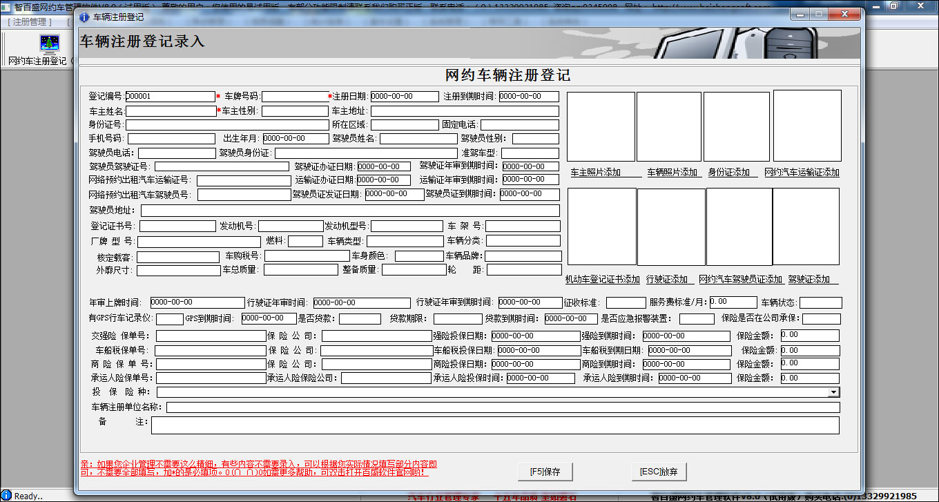 1、完善的车辆档案登记界面。