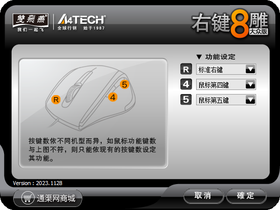 1、双飞燕右键8雕大众版提供鼠标设置功能,可以在软件界面设置鼠标按钮功能