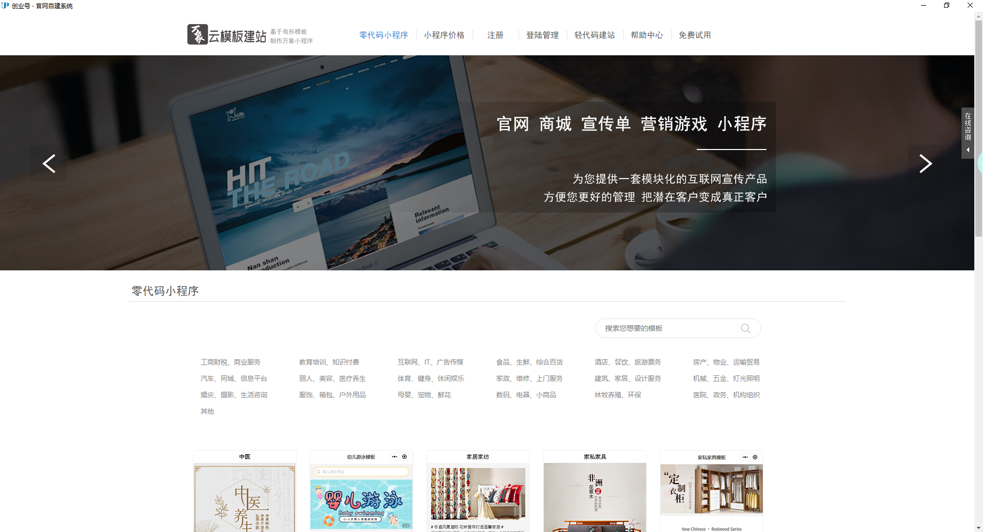 注:建议先进入电脑网站,按行业开始选择适合的官网模板开始
