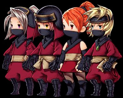1、复刻版的忍者有点像盗贼和魔剑士的混合版,使用的武器基本上就是小刀类,投掷类,暗黑剑类,防具也是源氏系列;FC版除了洋葱装备都能使用