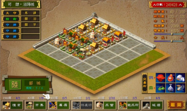 3、城池信息:士兵、金钱、所属主公、人口、士气、城池建筑、守城将领等;