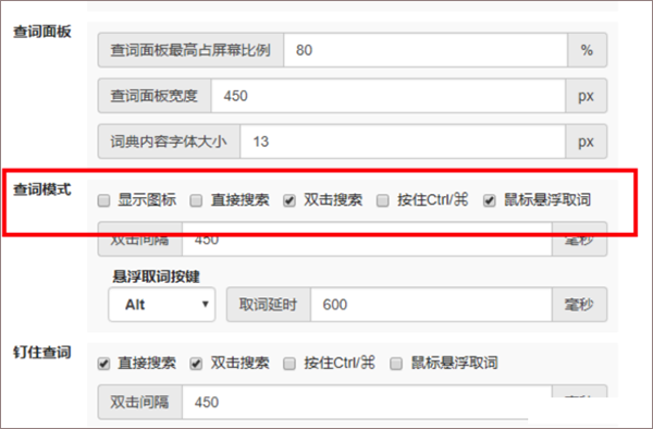 沙拉查词支持四种划词方式与鼠标悬浮取词同时设置,不同情况自动切换不同划词方式