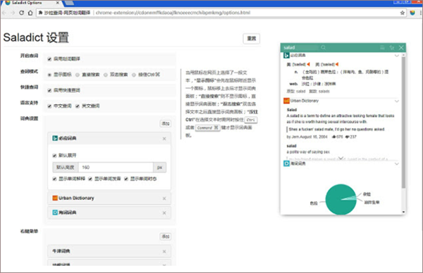 2、根据需求,对Saladict进行设置,比如设置词典;
