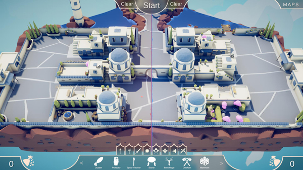 3、玩家不仅可以让两方挥着拳头互殴(话说,他们也没长手,那手长得跟树桩似的),还能给他们配备刀剑、护盾和弓箭,还有大炮,你还可以雇佣战斗鸡帮你赢得胜利。