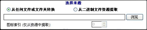 如果您想将图片转换为图标或提取与文件对象(例如文件夹)关联的图标,请使用默认选择的前者。如果要从二进制文件(如可执行文件,DLL,动画光标或现有图标文件)的资源中提取图标,请选择“ 从二进制文件资源中提取”。