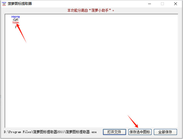3、选择需要提取图标的文件,点击保存选中图标或者全部保存,您就可以在保存路径里看到提取的图标文件了。