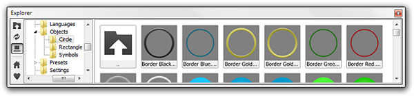 3、在资源管理器面板上按主页工具栏按钮。这将选择图像对象所在的“对象”文件夹。选择“圆圈”子文件夹。您可以在“资源管理器”面板中看到可用的圆形图像对象。