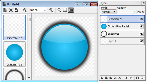 将“Reflection09.png”图像拖到图层面板。这将是图标上的反射效果。