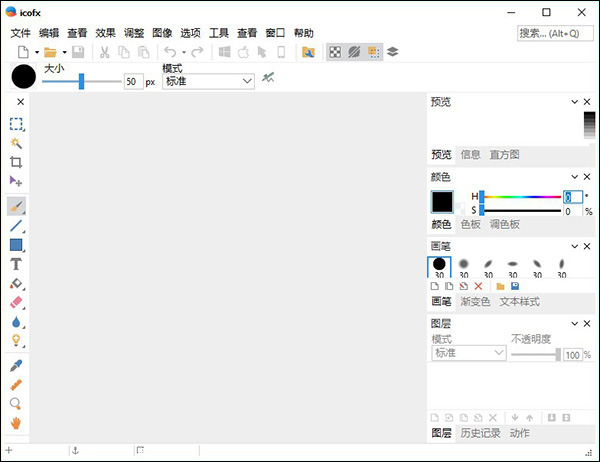 1、IcoFX是一个专业的图标和光标编辑器(极速下载站提供),带有大量的工具,您可以从中提取图标并创建令人印象深刻的设计。该程序的界面是专业和直观的。可以使用文件浏览器或“拖放”方法将项目导入到环境中。软件支持大量的输入文件类型,如JPG,BMP,ICO,XPM,GIF,EXE和DLL。当您可以使用一些标准的图形编辑功能(例如矩形选择,裁剪,画笔,线条,文字,填充,橡皮擦,模糊,变亮,颜色选择器,标尺,缩放和翻转)时,用户将会获得工具栏。