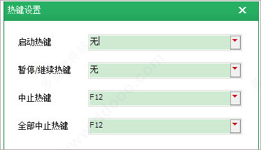 3、如果你想要设置为无限循环,选择按键精灵中间的那个选项,脚本就会一直循环直到按下终止键,默认的终止键是【F12】,如下图所示。这里还可以设置启动热键、暂停/继续热键、全部中止热键等等,大家可根据自己的用户需求进行自定义内容;