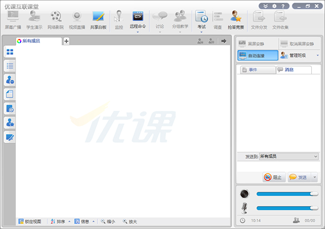 优课互联课堂教师端是一款界面简洁明了,操作简单易上手的电脑教学管理软件,为了可以更好的帮助教师轻松整合多元化优质资源,实现个性化备授课,提升教学效果,其中特提供了数字化教材、嵌入式教学资源、数字化教学工具、资源管理工具、班级管理工具等功能供用户使用。同时,通过该软件老师可以快速的向学生端发布文件、消息、远程命令、交互式测验等等,并且还可以实时监视和控制学生的桌面,功能十分全面,欢迎有需要的用户们免费下载体验。