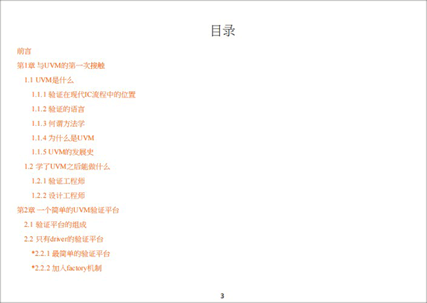 内容主要分为几个部分:首先介绍了UVM的基本概念和优势,包括验证环境搭建、序列编写与工厂机制的应用;然后深入探讨了寄存器模型的创建与应用,特别是后门访问与前门访问的区别;还详细讲解了工厂机制的实现方式及其在重载中的灵活运用。此外,书中还涉及代码复用性、高级功能(如层序序列和聚合参数)以及从OVM向UVM迁移的实际问题。