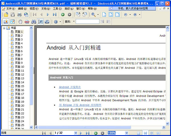 随着Android手机平台的水涨船高,各种Android开发资料也成为热门的教程。今天小编给大家带来了Android从入门到精通下载,它是一个PDF中文版教程,努力学习,你会发现Android的魅力无限,它能够让你体验到Android的精彩世界。小编一并送上PDF阅读器,点这里下载!