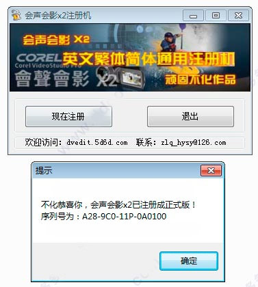 3、运行注册机,点击注册,会弹出会声会影x2已经成为正式版。