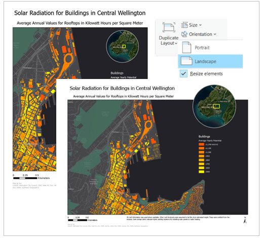 更改布局的页面大小或方向时,可以自动调整布局元素的大小并进行重新定位。 此外,还可以使用新命令复制布局 Duplicate layout 基于现有布局创建具有不同页面大小的新布局。 将保留所有布局元素,并且系统可以自动调整这些元素的大小并进行重新定位。