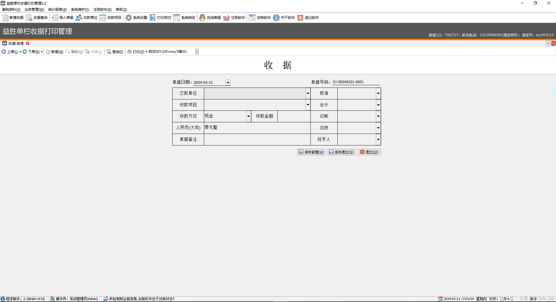除了打印收据外,益胜一栏式收据打印管理软件还具有其他强大的管理功能。例如,你可以对收据进行保存,以便在需要时查找,你也可以修改收据,如果你发现收据上有错误或者需要更改的地方,你可以轻松地进行修改,此外,如果你不再需要某张收据,你还可以使用软件的删除功能将其删除,欢迎有需要的用户朋友下载使用。