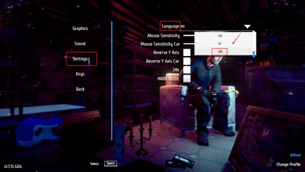 首先要解决语言问题,游戏默认是英文的,所以可以通过点击"Options"进入选项界面,然后点击“Setting”设置把“Language”选项的“en”调成“zh”即可设置为中文。