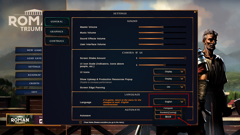 罗马凯旋生存城市建设者怎么设置中文?