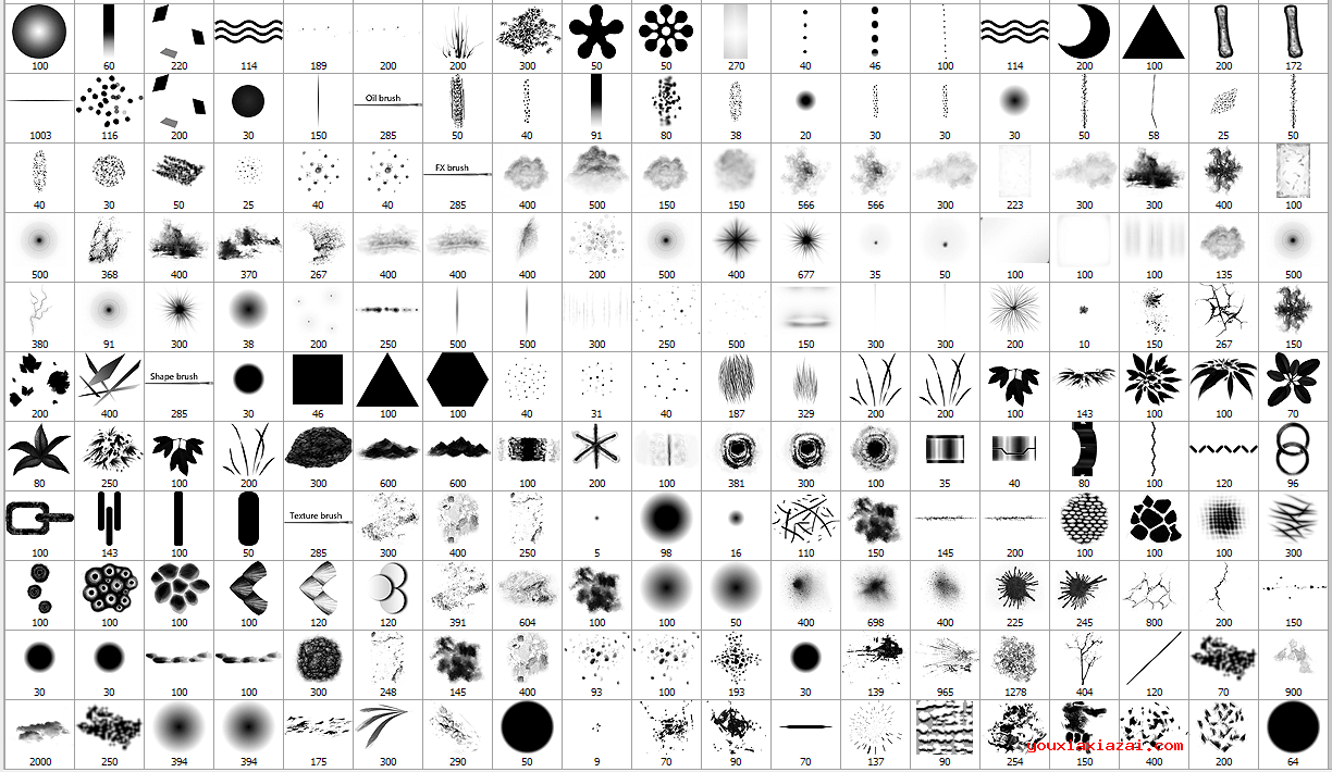 1、黄光剑笔刷内置二十多款笔刷工具,全部加载到PS上就可以使用。