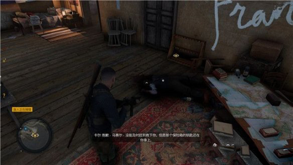 你将在这里找到已经死亡的反抗军首领,从他身上拾取保险箱钥匙。