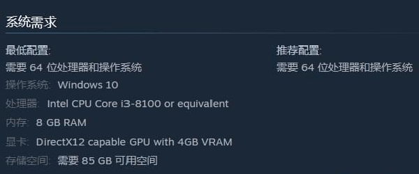 显卡: DirectX12 capable GPU with 4GB VRAM